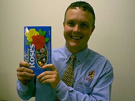 Here's Glenn with the huge box of Roses