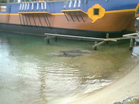 swimming around it. I love dolphins. Espcially done in breadcrumbs. |