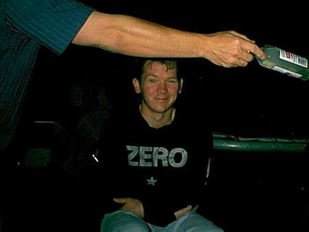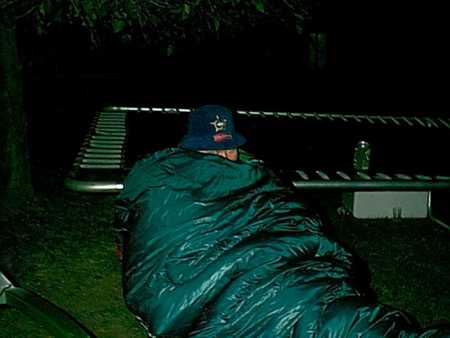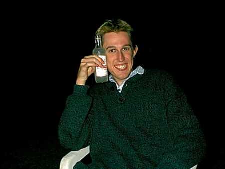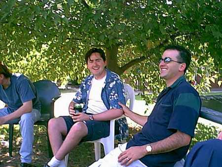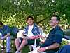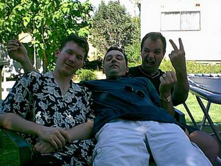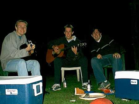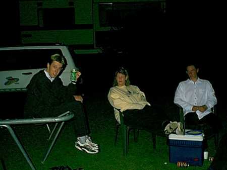 Brian, Claudio and Fletch relax after the long drive. Fletch demonstrates his automatic camera reaction.