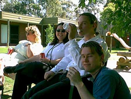 As we've already seen, when McPherson Media parties, all Hell breaks loose. Last year we camped at Ulupna Island (which isn't an island, funnily enough) and the perfect blend of alcohol and nutcases resulted in a great night. So it was no surprise that we had an abolute ball when we had our annual Christmas Camp at the River Gallery Inn near Echuca. It wasn't really an Inn so much as a bunch of cabins, but we still had umpteen flavours of fun that night. Read on for more details.