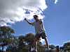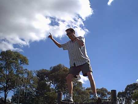 Is it a bird? Is it a plane? No! Its SuperHatch. Braden demonstrates his super power enabling him to simultaneously balance atop a log playground thingo and answer helpdesk calls. But where's the lycra costume?