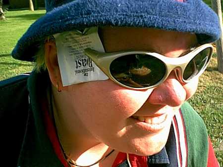 Scott G tries to escape the area with a pair of stolen knees under his jacket...