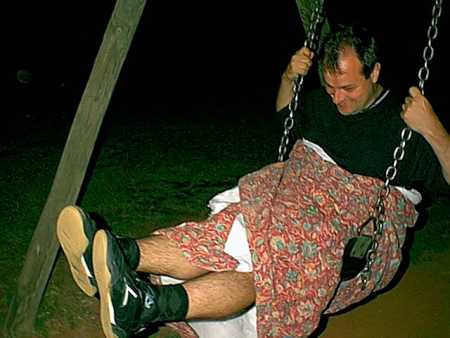 Ahhh... this is the stuff... This is our illustrious General Manager, Mr. Claudio. On the swings... tee hee hee...