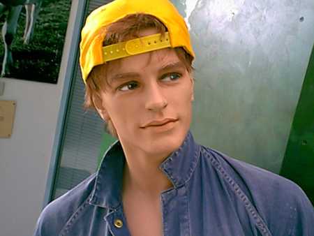 Here's a mannequin thats been dressed up to look like a rapping dairy farmer. MC Milky's in da house!